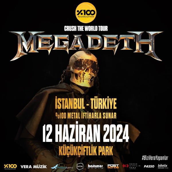 Thrash metal sahnesinin efsanevi grubu Megadeth, Vera Müzik ve Freebird Agency organizasyonuyla, “Crush the World Tour” kapsamında, 2024’ün en büyük metal konseri için 12 Haziran Çarşamba akşamı KüçükÇiftlik Park’ta sahne alacak.
