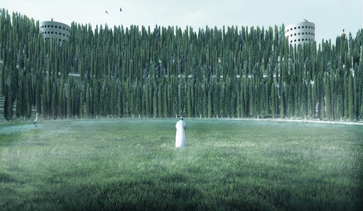 Angelo Renna mevcut tribünleri yeşil teraslara dönüştürmeyi ve yeni istinat duvarları boyunca 35 bin İtalyan selvisi dikmeyi öneriyor. Selvi, tüm Akdeniz bölgesi boyunca binlerce yıldır yetiştirilen ortak bir süs ağacıdır. Koyu yeşil dikey şekil, ölümsüzlük sembolü ya da ölümden sonra yaşamın bir işareti gibi mezarlıkların ve kutsal alanların karakteristik bir imzasıdır.
