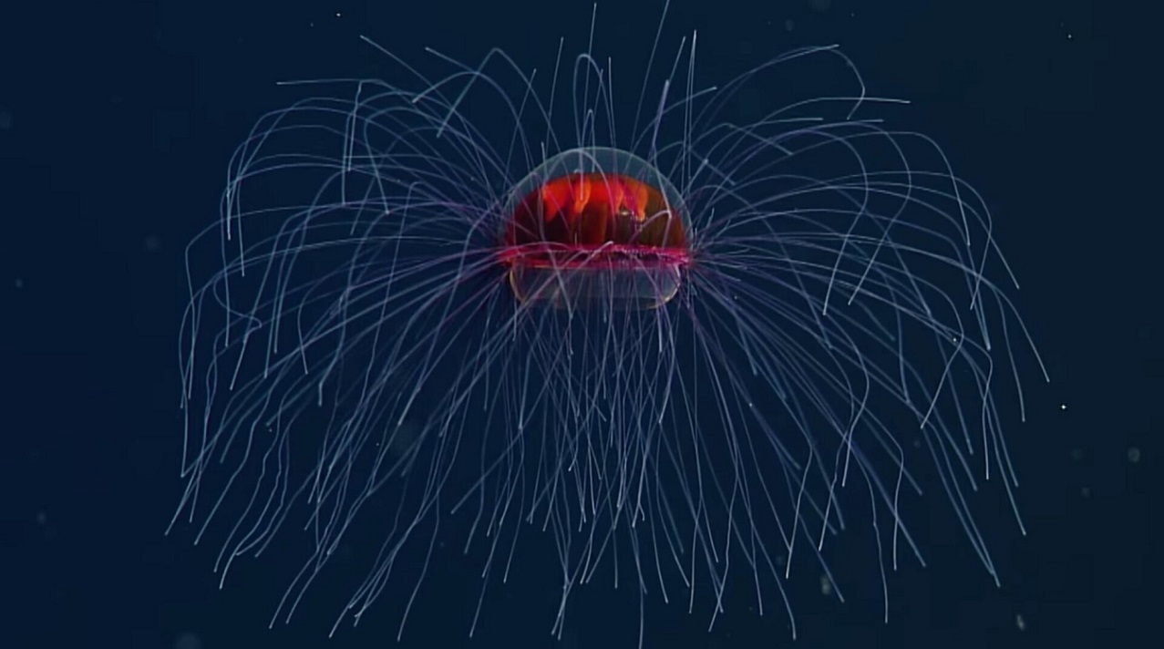 İlk olarak 2018’de keşfedilen bu bulunması zor yaratık, suda sürüklenirken jelatinimsi uzantılar yerine renkli ışık izleri gibi görünen parlak, cılız dokunaçlara sahip. Görüntüler, hem erkek hem de dişi örneklerin ve onların farklı vücut bölümlerinin anlık görsellerini paylaşıyor. Bu hayalet denizanasını ve onun 33 metrelik uzuvlarını izlemek isteyebilirsiniz.