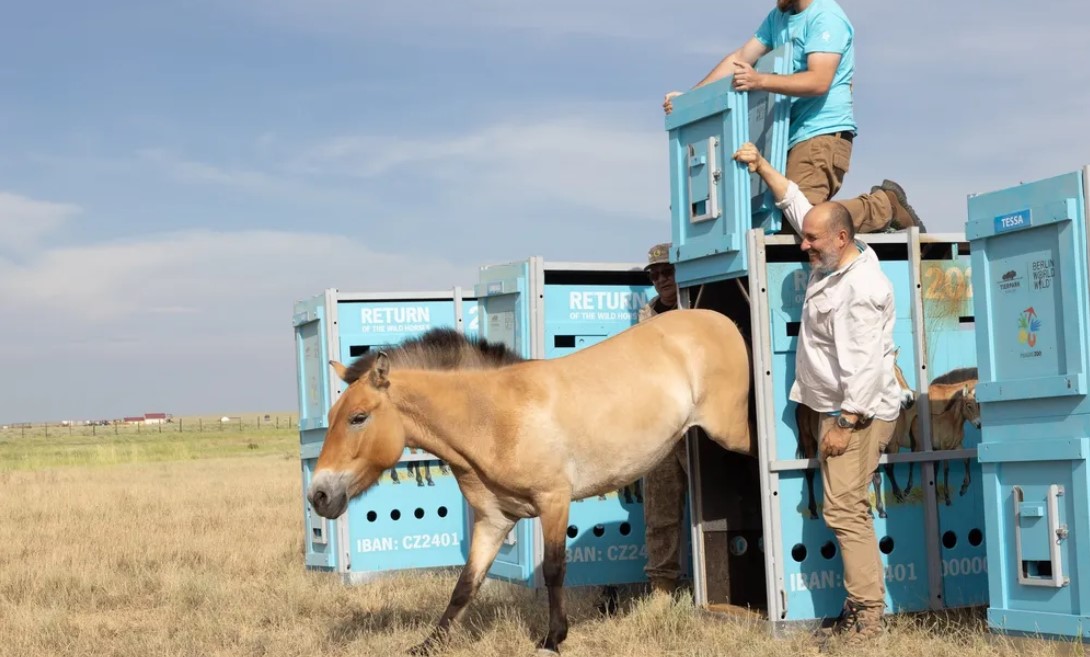 Prag Hayvanat Bahçesi liderliğindeki uluslararası girişimler Przewalski’nin yedi atını Orta Asya’daki doğal bozkır habitatlarına saldı.