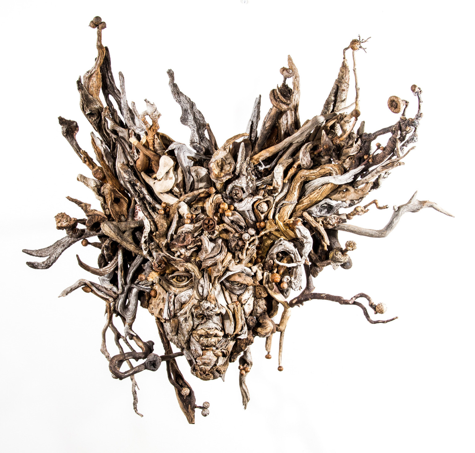 Sanatçı Bennett Ewing, etkileyici portre heykeller yaratmak için dağlardan, çöllerden, plajlardan ve ormanlardan odun parçaları toplayarak dünyayı geziyor. Eyevan Tumbleweed sanatçı adıyla çalışmalarının yürüten Ewing, malzemenin doğal şekil ve tonlarını kullanarak eserlerinde çağrışım yapan yüz özellikleri ve vahşi saç stilleri ortaya çıkarıyor. Sanatçı, “Orman varlıkları ve onların düşünce ve duygu ifadeleri, tamamen yabancı olmayan bir başka dünyanın görüntüsünü canlandırıyor,” diyor. Ewing’in eserlerinin daha fazlasını internet sitesinde ve Instagram’da görebilirsiniz.