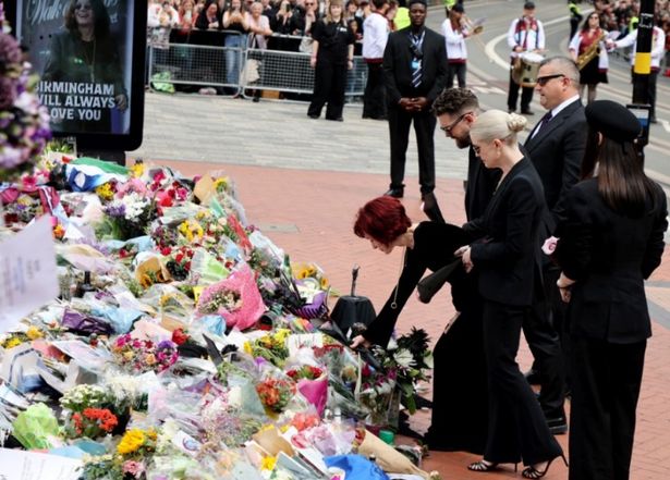 Aile hayranları tarafından bırakılan yüzlerce çiçek ve nota bakıp çiçekler bıraktı. 22 Temmuz’daki ölümünün ardından heavy metal öncüsünün yasını tutmak için Birmingham’a gelenlere barış işareti yaptı.