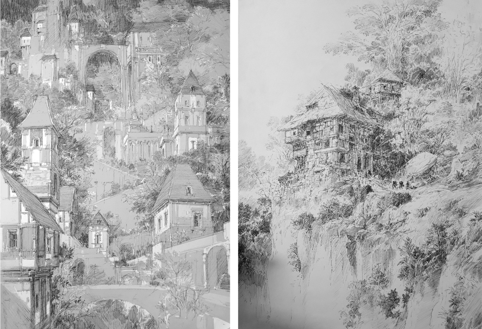 Sanatçı adı PaperBlue olan JaeCheol Park, mimari taslaklar tarzında karmaşık çizimler yapıyor.