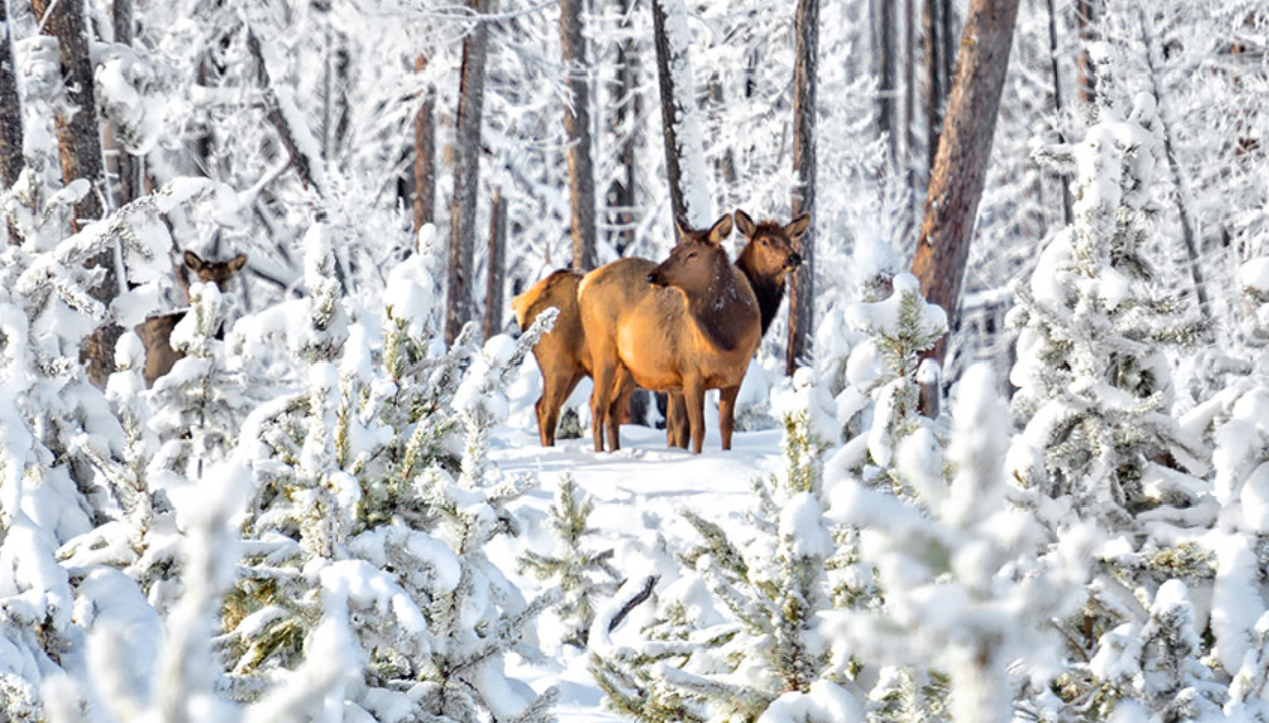 Onur ödülü: “Small Elk Herd Framed by Snowy Trees” @ Carol Fowler