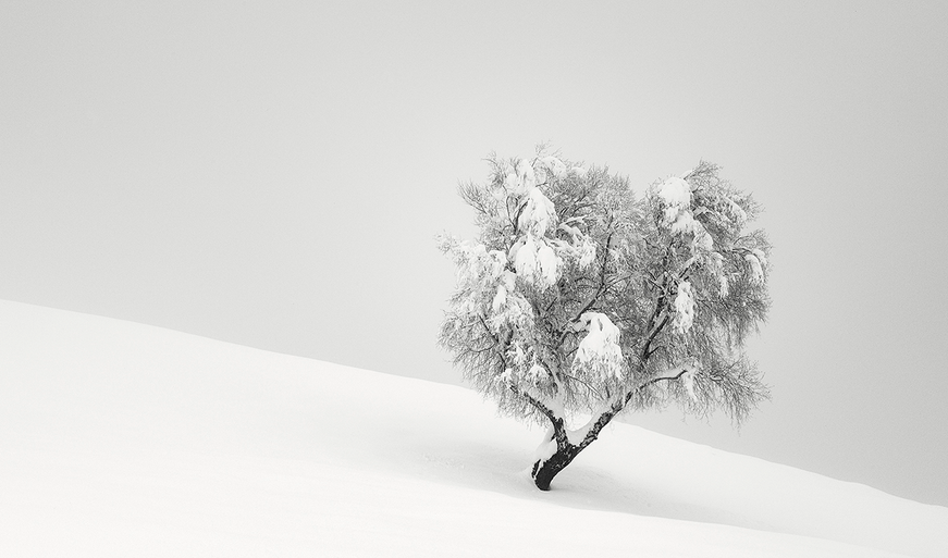 İsviçreli fotoğrafçı Pierre Pellegrini, ağaçlıklar, karla kaplı iskeleler ve viraneye dönüşen yapıları, kara kalem çizim hissi verecek şekilde fotoğraflıyor.