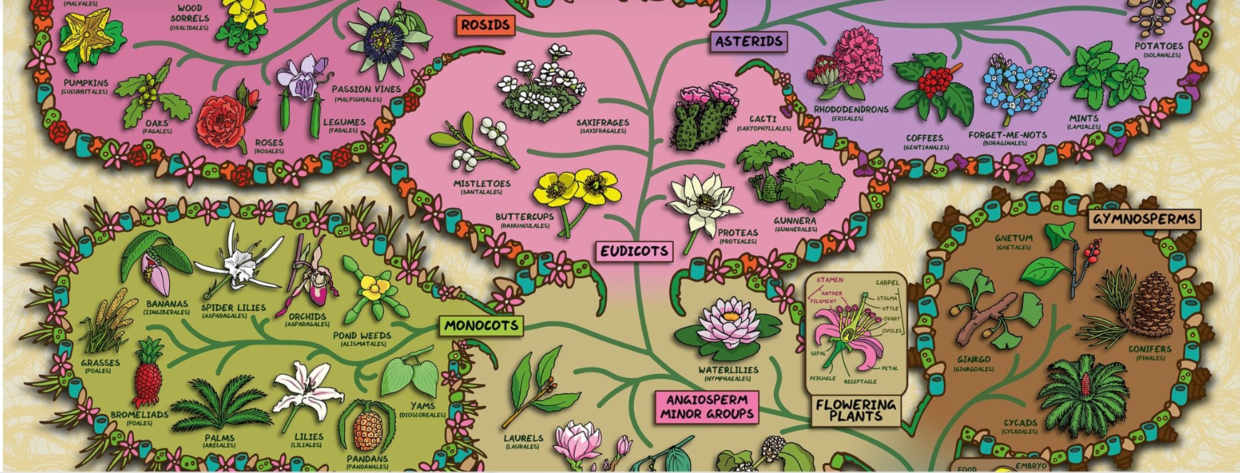 Bitkiler oksijen sağlar, manzaramızı renklendirir, bazıları besin kaynağımızdır. Büyük resme bakıldığındaysa bitkilerin birbirinden ne kadar farklı olduğunu kavramak zor olabilir. Bu fikirden yola çıkan Domain of Science’dan ,fizikçi Dominic Walliman kapsamlı bir Bitki Haritası hazırladı. Açıklayıcı grafikler üzerinde çalışan Walliman iç işleyişini öğretmek için bize bitki örtüsünün farklılıklarını ve benzerliklerini vurguluyor.