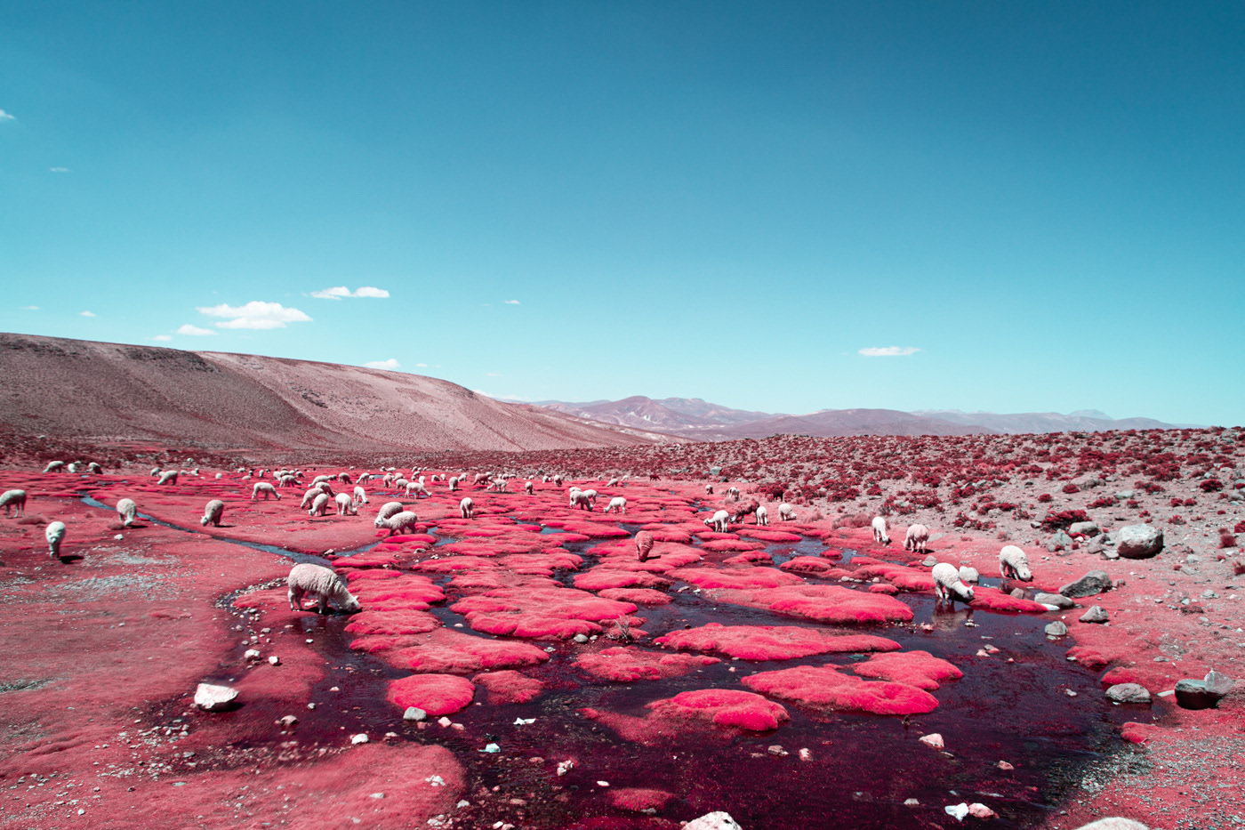 Torino merkezli sanat yönetmeni ve fotoğrafçı Paolo Pettigiani en son projesini Peru’da, Patapampa geçidine giden yolda gerçekleştirdi. “Alpaka Nehri” (Alpaca River) başlıklı serisi, kızılötesi fotoğraflarla bölgede yaşayan alpakaları öne çıkarıyor. Kamera tarafından yakalanan ışık spektrumu, dağlık manzaralara, fuşya pembe çimenlerde otlayan şeker pembe kürklü hayvanlarla rüya gibi bir atmosfer sağlıyor.