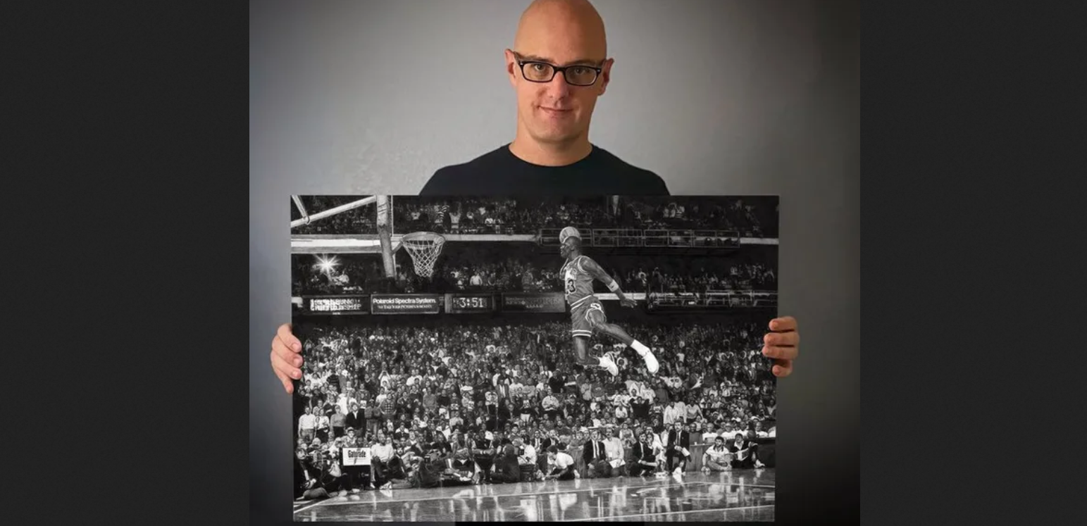 1988 NBA smaç yarışmasında adeta uçan Michael Jordan’ın portresi olan son projesini yaratması 250 saat sürdü. Çizim sosyal medyada paylaşıldıktan sonra Hall’un internet sitesi çöktü.