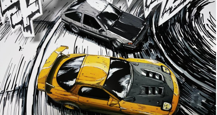Shuichi Shigeno tarafından tasarlanan Initial D adlı görüntü ilk bakışta bir manga çalışması gibi görünse de aslında fotoğrafçının zekice bir kurgusundan başka bir şey değil.