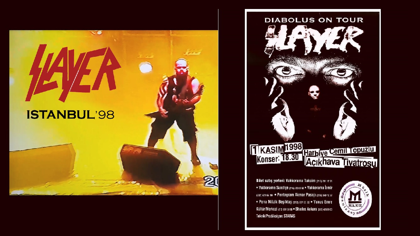 Dünyaca ünlü Thrash Metal grubu Slayer’ın 1 Kasım 1998’de İstanbul Harbiye Açıkhava Tiyatrosu’nda verdiği efsanevi konserin görüntüleri 23 yıl sonra ortaya çıktı.