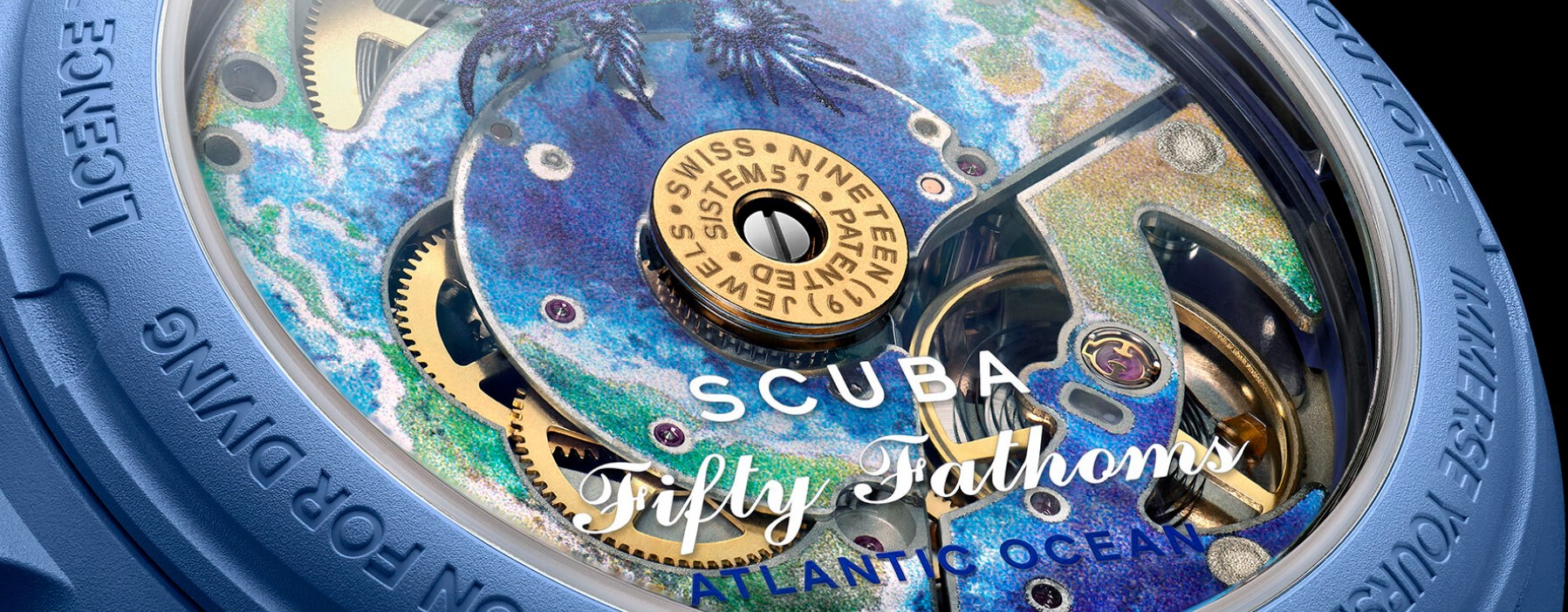 Bioceramic Scuba Fifty Fathoms Koleksiyonu beş mekanik saatten oluşuyor. Her biri Swatch’un kendi dalış saatleri serisi olan SCUBA’dan ilham alıyor ve esrarengiz derin deniz dünyasından ipuçlarına sahip. Bu koleksiyondaki her model beş okyanustan birine ve bu okyanus derinliklerini evi olarak gören renkli yaratıklara bir övgü niteliğinde. Bu koleksiyonu keşfetmek için takvimlerinize 9 Eylül 2023 tarihini işaretleyin.