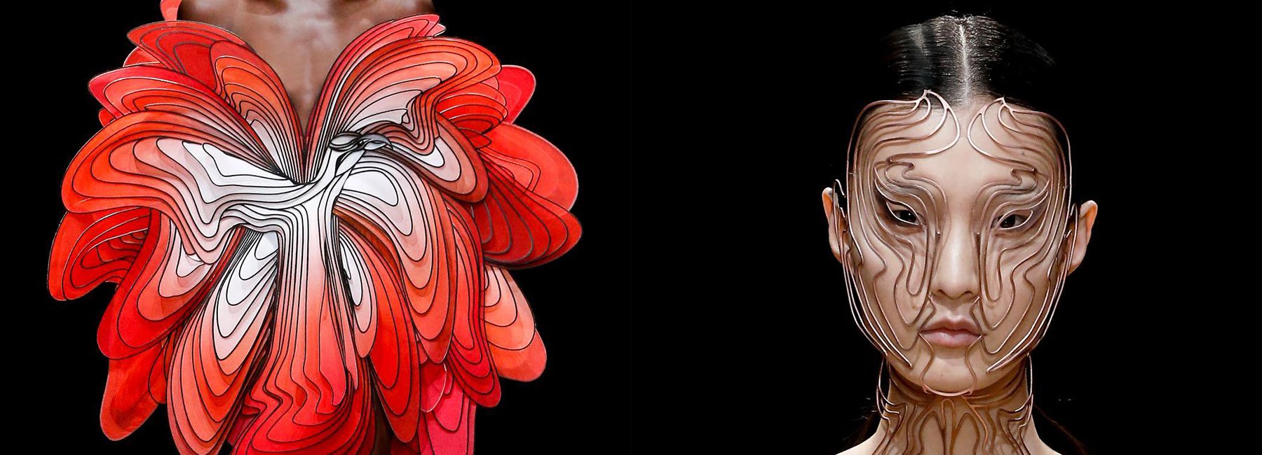 Geleceğe bir bakış açısı sunan Amsterdam merkezli Van Herpen, teknoloji ve yaratıcılığın mükemmel karışımını gözler önüne seriyor. Harmonia Macrocosmica’dan (17. yüzyıldan kalma bir yıldız atlası) esinleniyor ve teknoloji tarafından tasarlanmış insan melezleri olasılığını ortaya koyuyor.