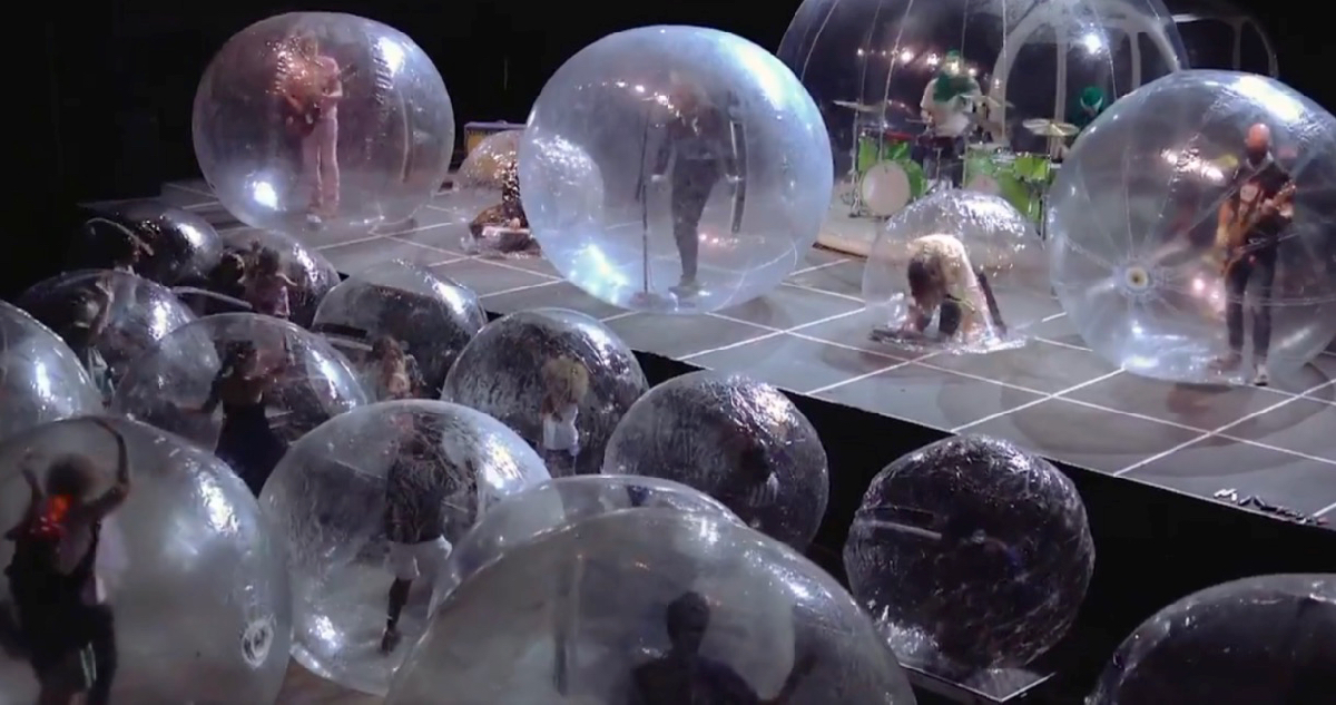 Coronavirüs salgını öncesinde de grubun solisti Wayne Coyne tarafından konserlerde kullanılan, dev hamster balonu böylelikle tecrit amaçlı kullanılmış oldu.