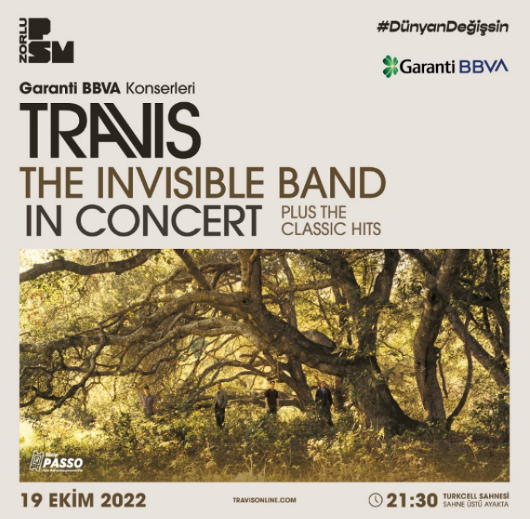 Multi BRIT ödüllü İskoç grup Travis, 19 Ekim 2022 Çarşamba günü klasik albümleri ‘The Invisible Band’ ve diğer hit parçalarını Zorlu PSM’de seslendirmek için Garanti BBVA Konserleri ile İstanbul’a dönüyor.