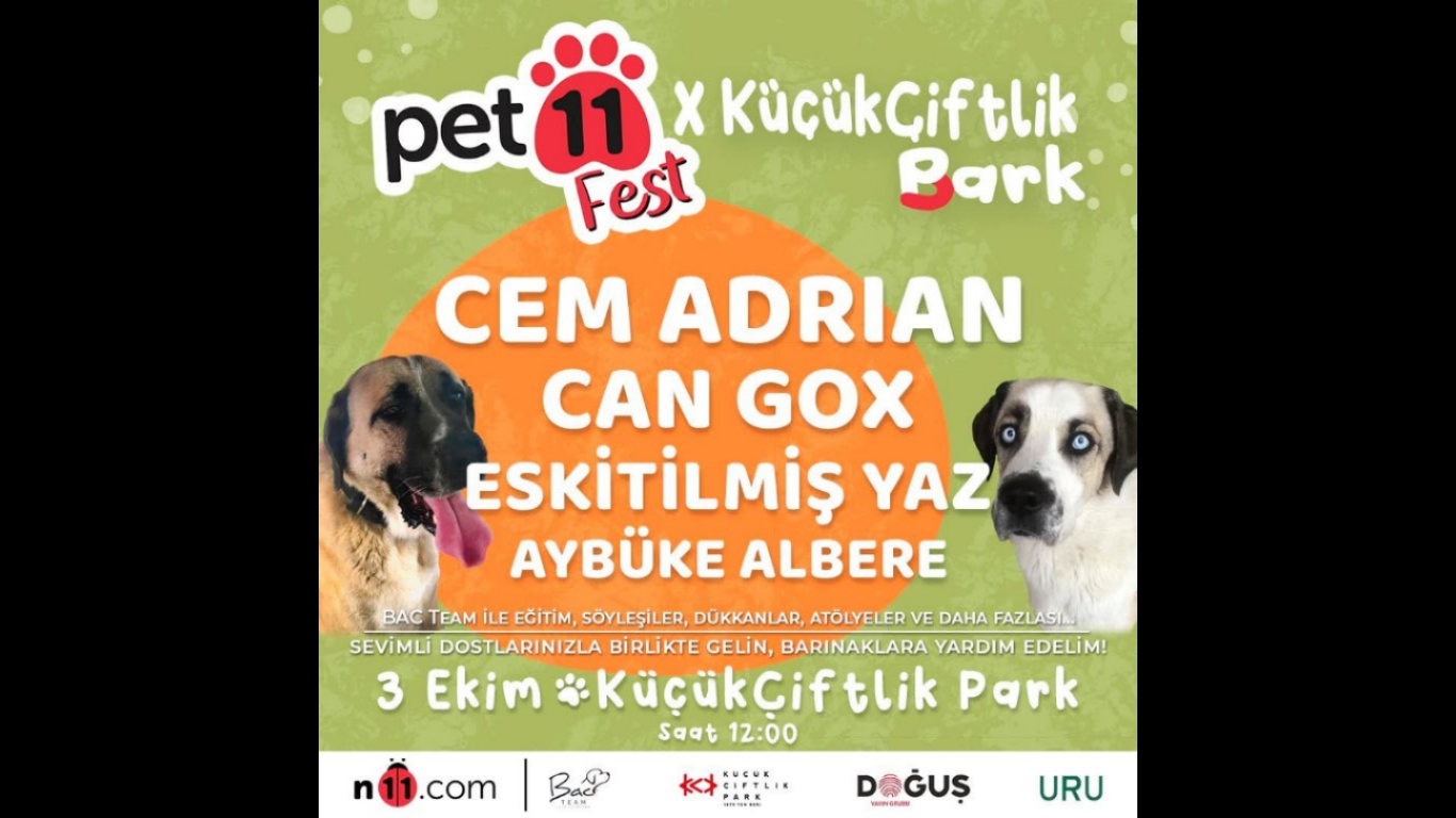 KüçükÇiftlik Park’ta, n11.com’un evcil hayvanlara özel markası pet11’in desteği ve URU organizasyonuyla 3 Ekim Pazar günü gerçekleşecek pet11 Fest x KüçükÇiftlik Bark’ın kapıları 12.00’de açılacak. Tüm gün sürecek festival kapsamında elde edilen tüm gelir, mama ve kulübe olarak hayvan barınaklarına bağışlanacak.
