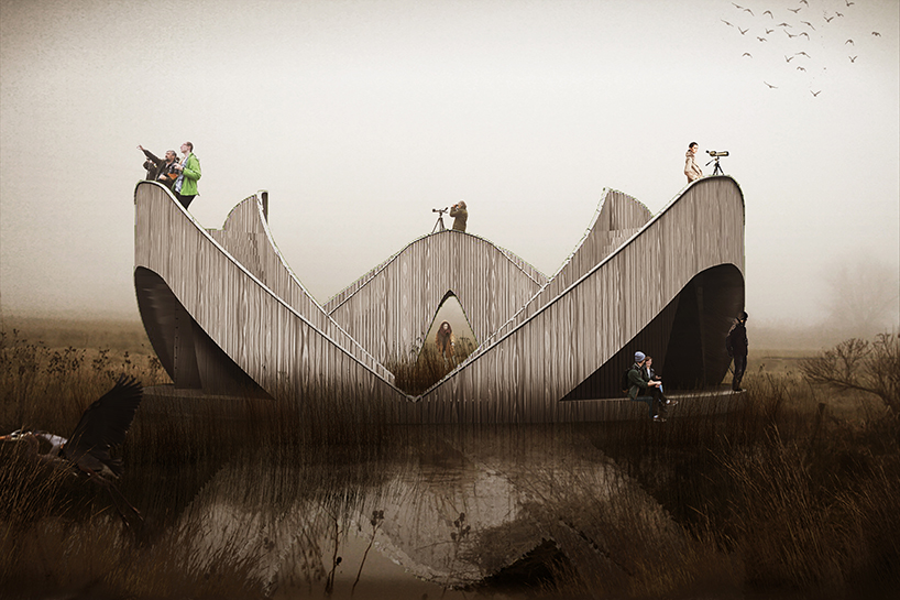 Ulf Mejergren Mimarlık, Letonya’daki uluslararası bilinirliğe sahip Pape Doğa Parkı’ndaki üç heykel merdiveni birleştiren ikonik bir gözlemevi önerisi ortaya attı. Teklif, WWF ile işbirliği içinde düzenlenen mimarlık yarışmalarının birincisi olan Pape Kuş Gözlem Kulesi yarışmasında kısa listeye alındı.