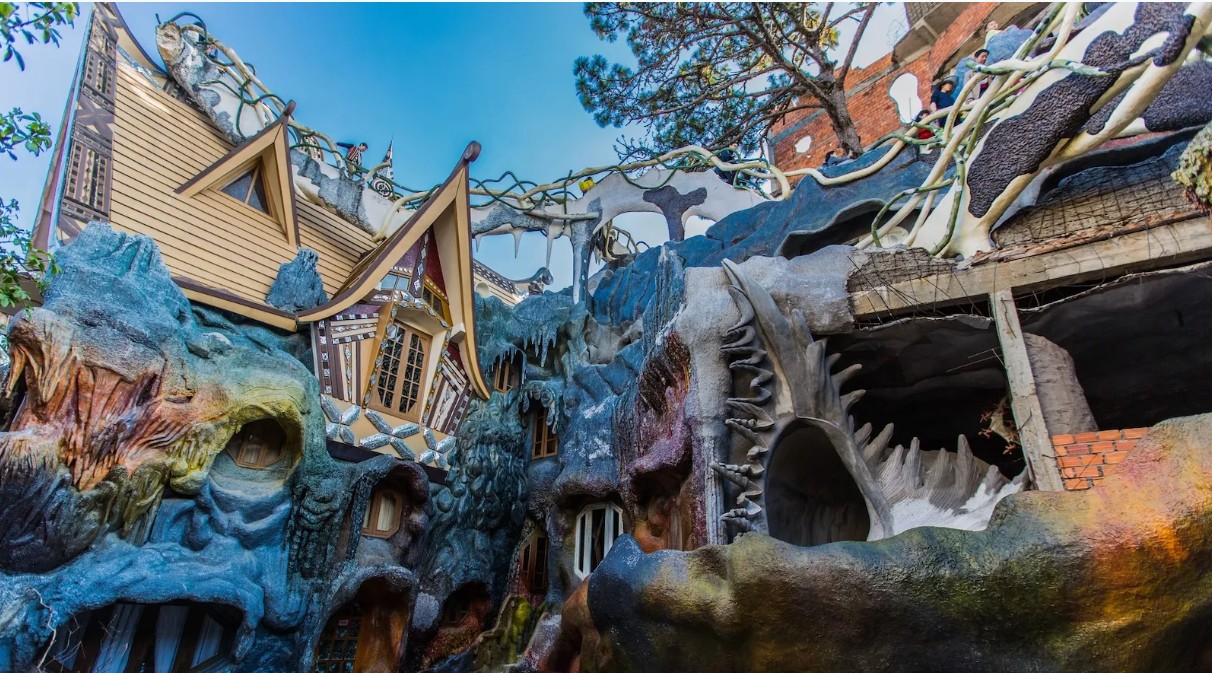 Vietnam’ın Da Lat şehrinin yemyeşil doğasında yer alan Crazy House adlı fantastik bir konukevi ziyaretçilerini adeta büyülüyor. Hang Nga veya “Ay Tanrıçası” konukevi olarak da bilinen Crazy House örümcek ağları, deniz kabukları, ahtapot kolları gibi şekillerde spiraller çizen ağaç dallarıyla çevrili büyülü bir Banyan ağacına benziyor.