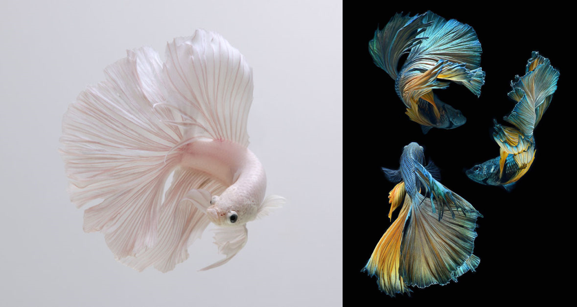 Fotoğrafçı Visarute Angkatavanich, Siyam dövüş balıklarının nefes kesici portrelerini yakalıyor. Fotoğrafçının yüksek kontrastlı arka plan seçimi, onların gerçek balıklardan ziyade bilgisayar görüntülerine benzemesini sağlıyor.